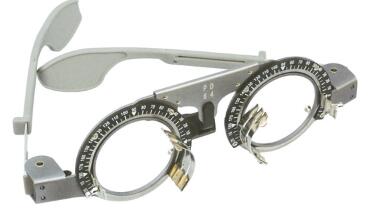 試鏡架是驗(yàn)光配鏡的基本工具之一,每次插片驗(yàn)光都必須用到它。它具有一個(gè)眼鏡架式的框架,在框架兩個(gè)圓圈的正面各配設(shè)兩個(gè)試鏡坐腳。試鏡架是在綜合驗(yàn)光儀進(jìn)行主覺驗(yàn)光之后使用的,雖然綜合驗(yàn)光儀得到的結(jié)果已經(jīng)較準(zhǔn)確,但還必須再用試鏡架技術(shù)進(jìn)行適當(dāng)?shù)恼{(diào)整,因?yàn)樵囩R架比綜合驗(yàn)光儀更接近于實(shí)際佩戴情形。